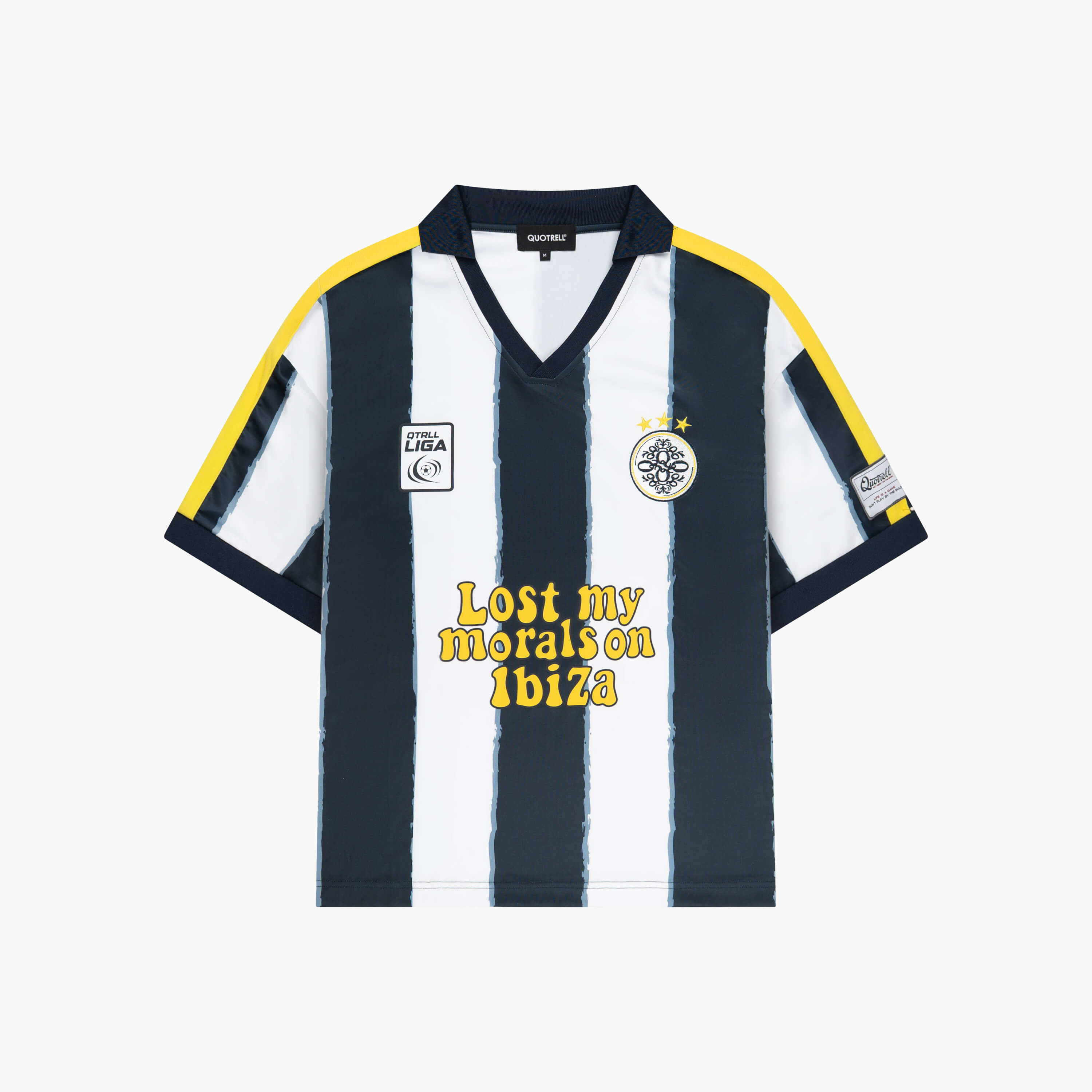 • The Ibiza Jersey features an oversized fit with lightweight breathable fabric for comfort and movement. Vertical striping, bold front and back graphics, and signature branding create a strong football-inspired streetwear identity. Designed with a relaxed silhouette for standout everyday wear.