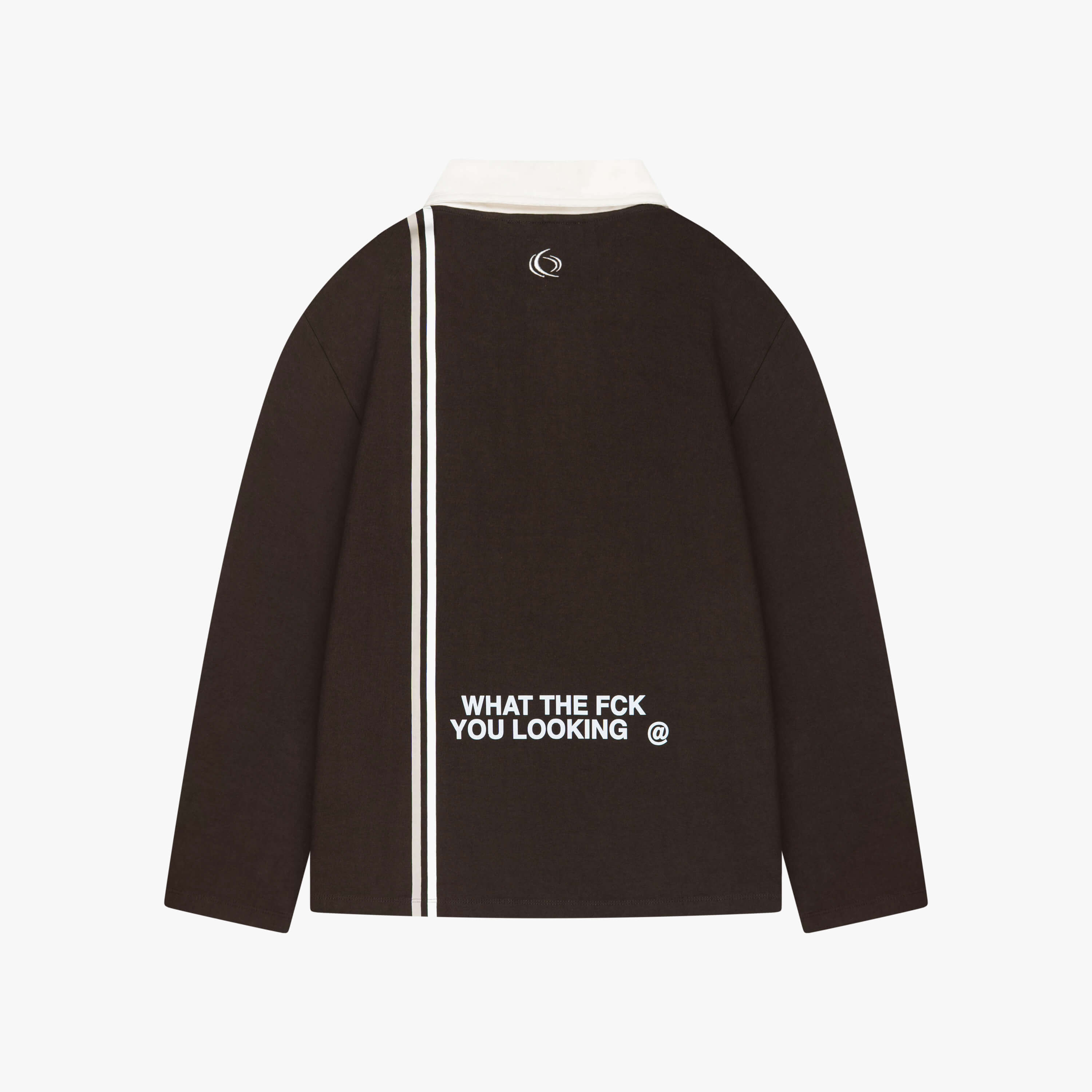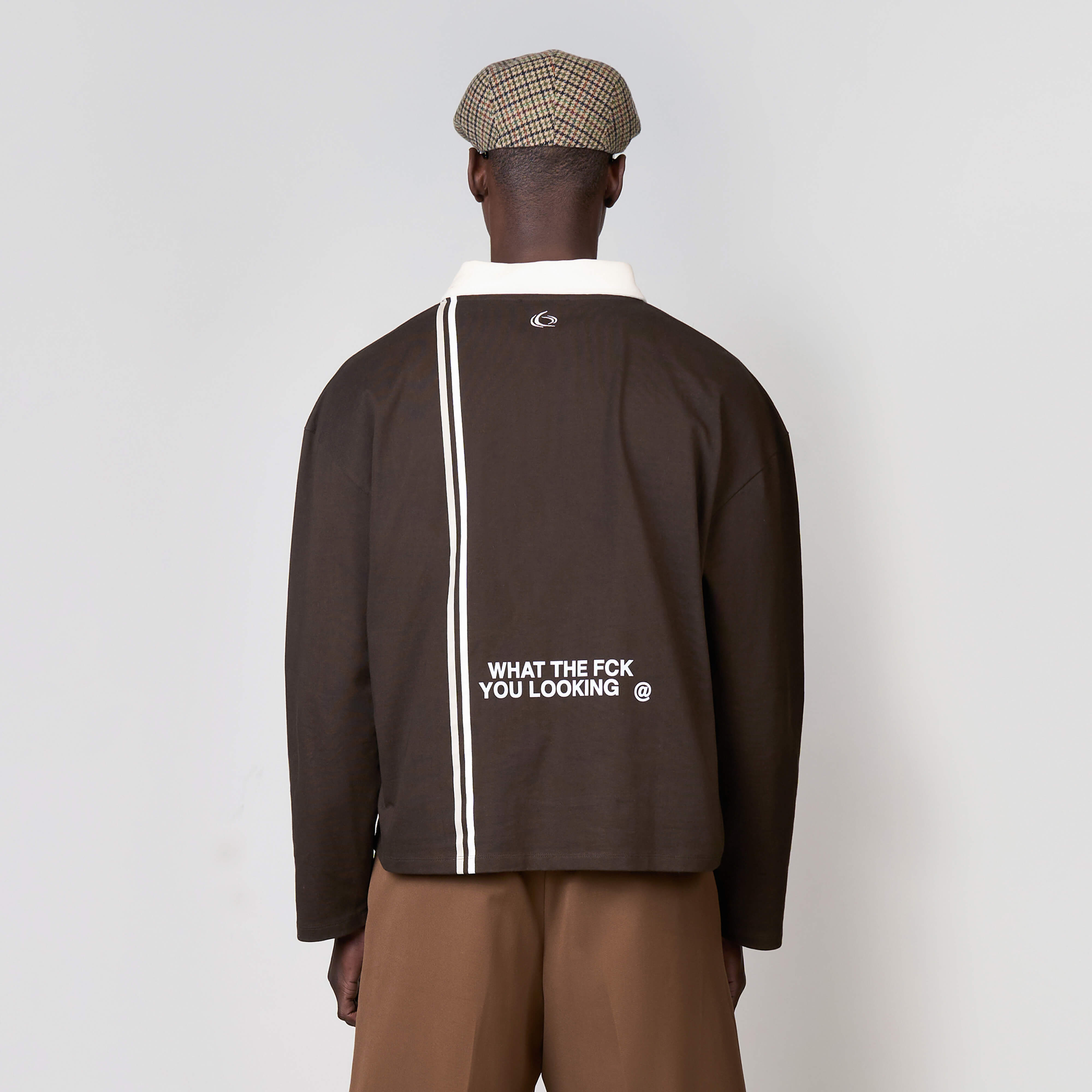 Es ist aus hochwertigem Stoff gefertigt und bietet den ganzen Tag über Komfort und ein selbstbewusstes Tragegefühl. Der kontrastierende Kragen und die Knopfleiste verleihen ihm eine raffinierte Note, während auffällige Grafiken und Stickereien ihm eine rohe Energie verleihen. Von vorne bis hinten spricht dieses Longsleeve eine deutliche Sprache, ohne sich zu sehr anzustrengen.