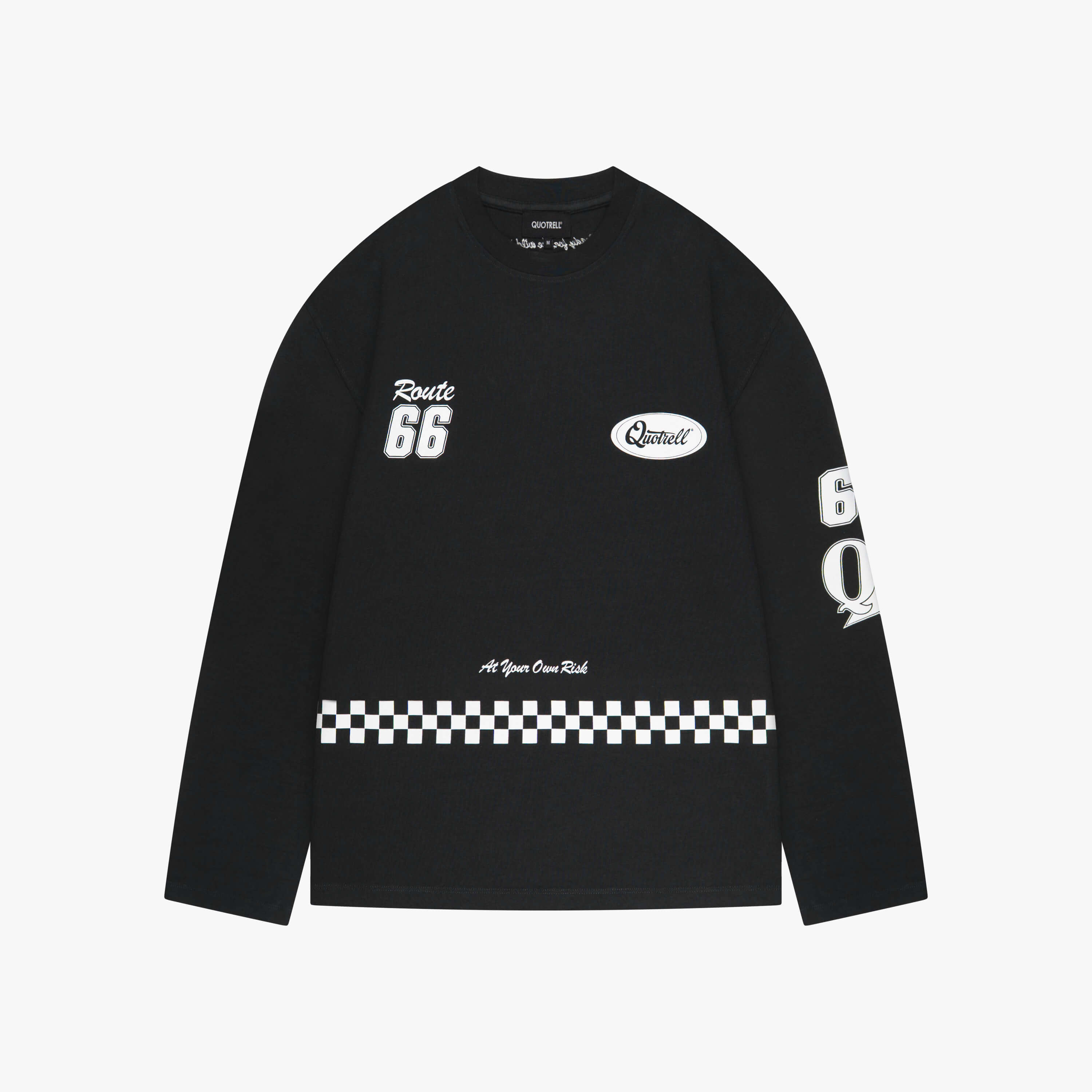Das Racing Langarmshirt zeichnet sich durch eine weite Passform und hochwertige Baumwollqualität für Komfort und Langlebigkeit aus. Auffällige Grafiken auf Vorderseite, Rückseite und Ärmeln, kombiniert mit Schachbrett- und Zahlenmustern, schaffen eine starke, vom Motorsport inspirierte Erscheinung. Gerippte Bündchen und ein strukturierter Halsausschnitt sorgen für eine klare Silhouette, wodurch es sich ideal zum Übereinandertragen oder als eigenständiges Straßenkleidungsstück eignet.