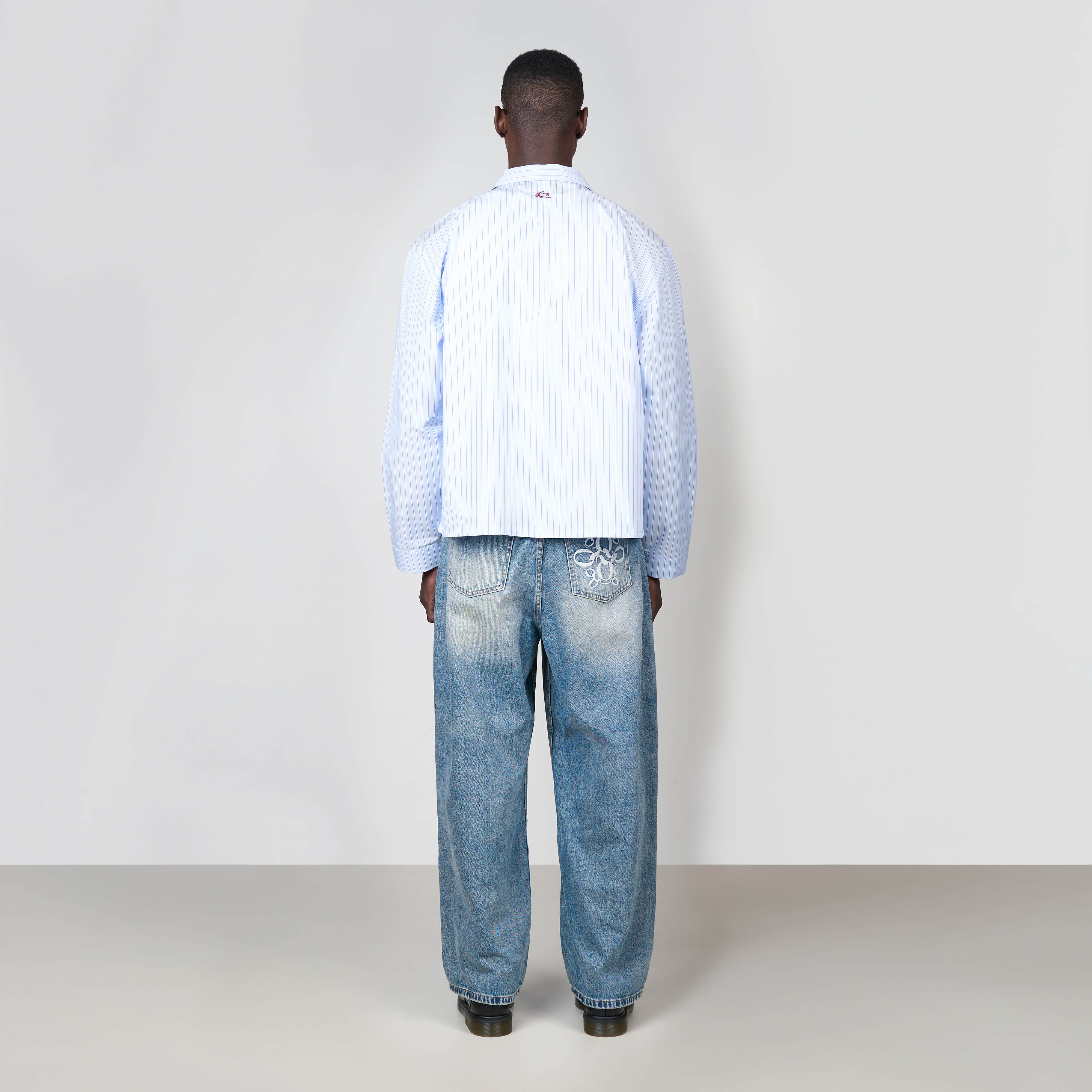 The Club Shirt combines a clean tailored look with a modern streetwear edge. Designed in a lightweight fabric with a subtle striped pattern, it features a relaxed fit and classic button closure for effortless wear. Embroidered details on the chest, including the Creative Dept. text and signature emblem, add a distinctive touch. A versatile piece that blends smart and casual style for everyday outfits.