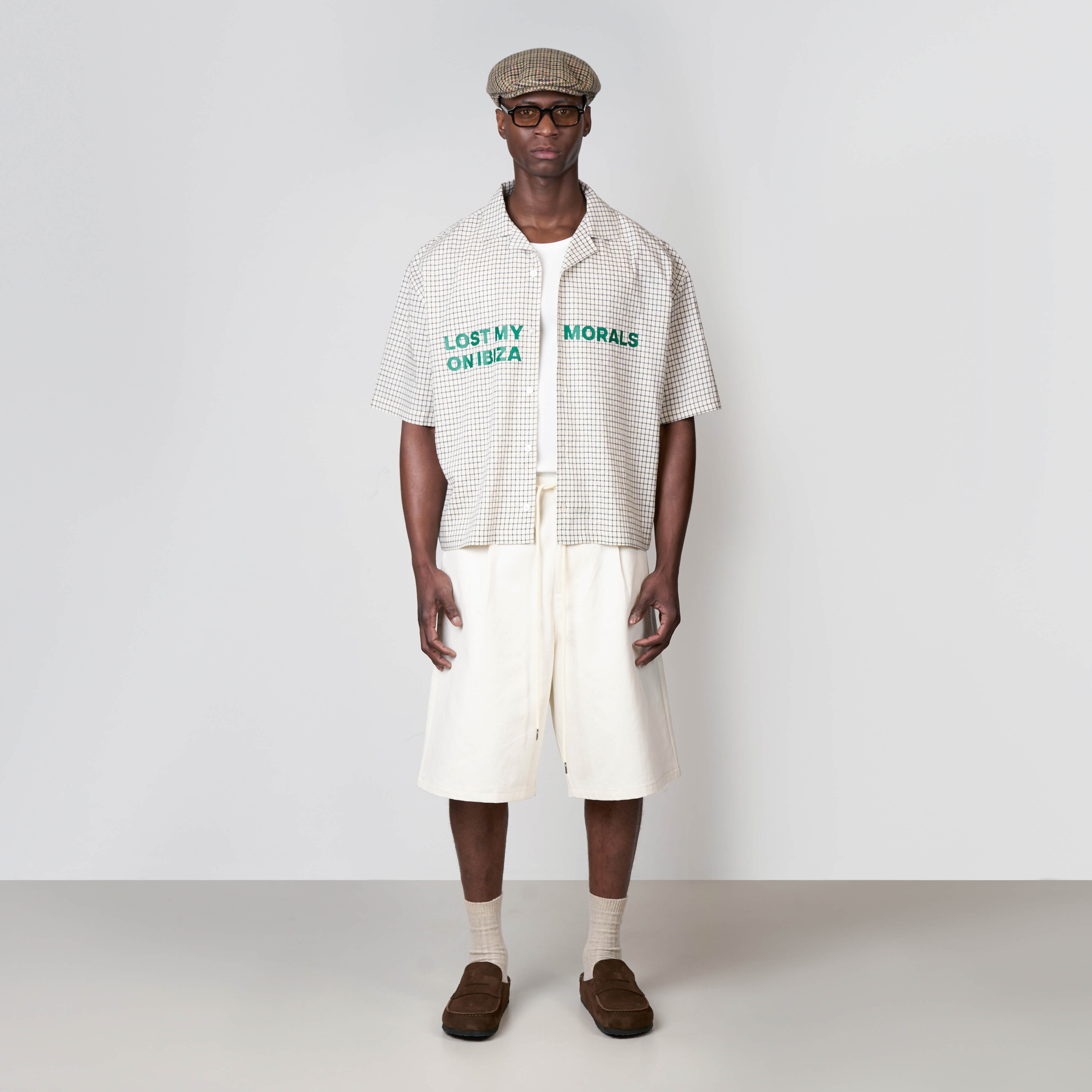 The Morals Shirt features a oversized fit with a lightweight fabric and a clean checked pattern. Designed with a button closure and open collar for an easy, laid back look. Bold text artwork on the front adds a statement touch, while subtle branding on the back keeps the design balanced. A modern shirt that combines classic style with a strong streetwear attitude.