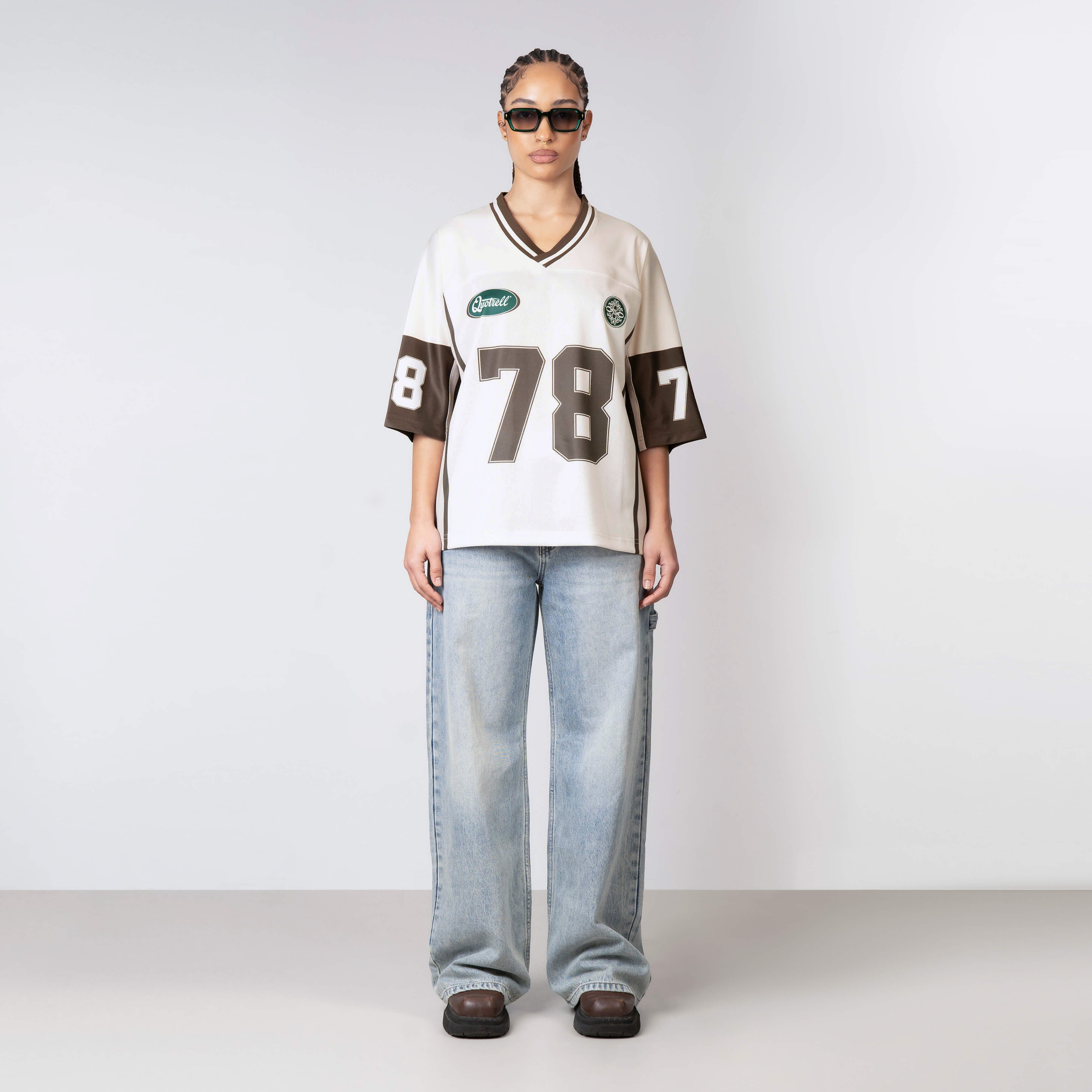 • The Darnell Mesh Jersey features an oversized fit with breathable mesh fabric for ventilation and comfort. Bold number graphics, sleeve prints, and contrast panels create a strong athletic silhouette. Finished with a V-neck collar and structured shape for modern streetwear styling.