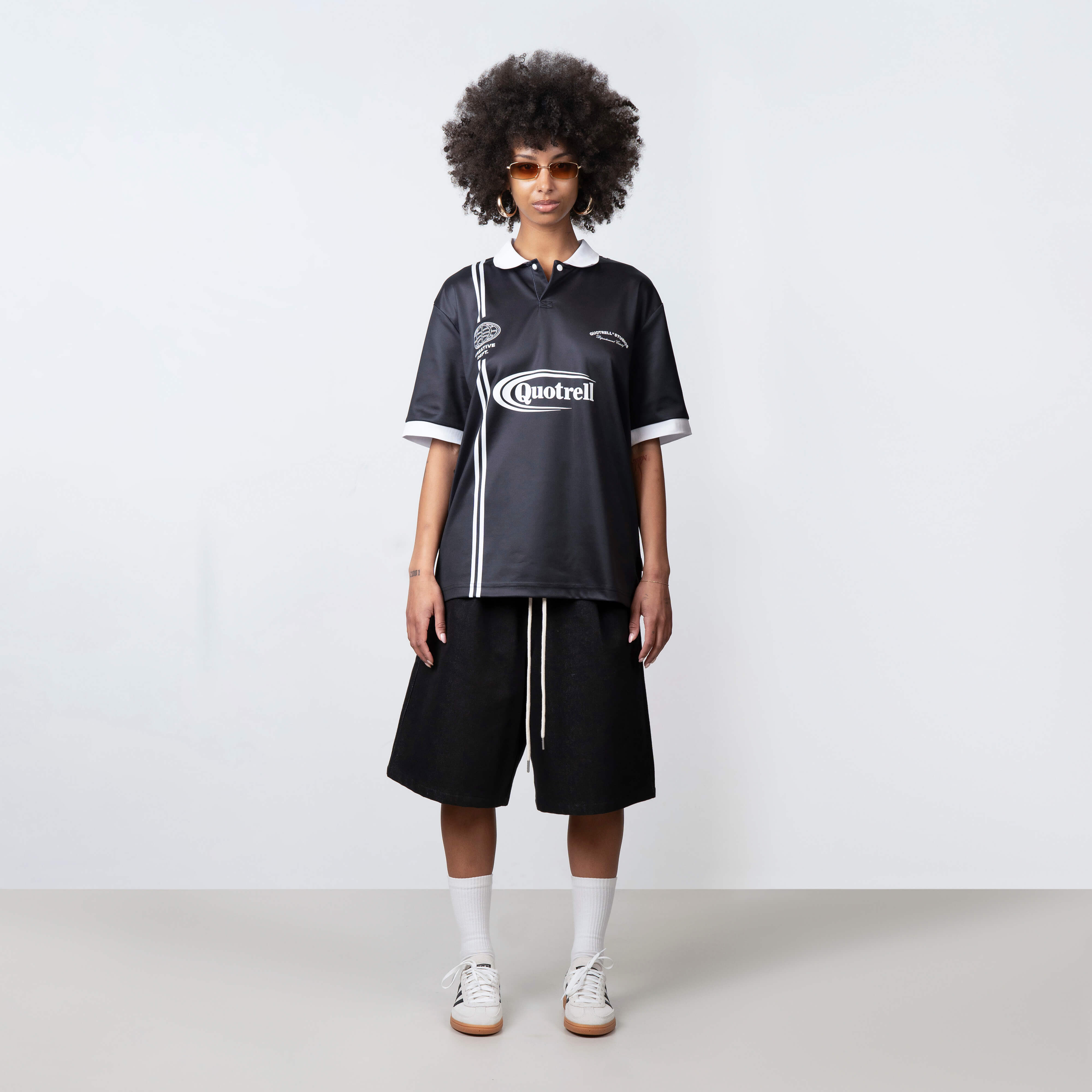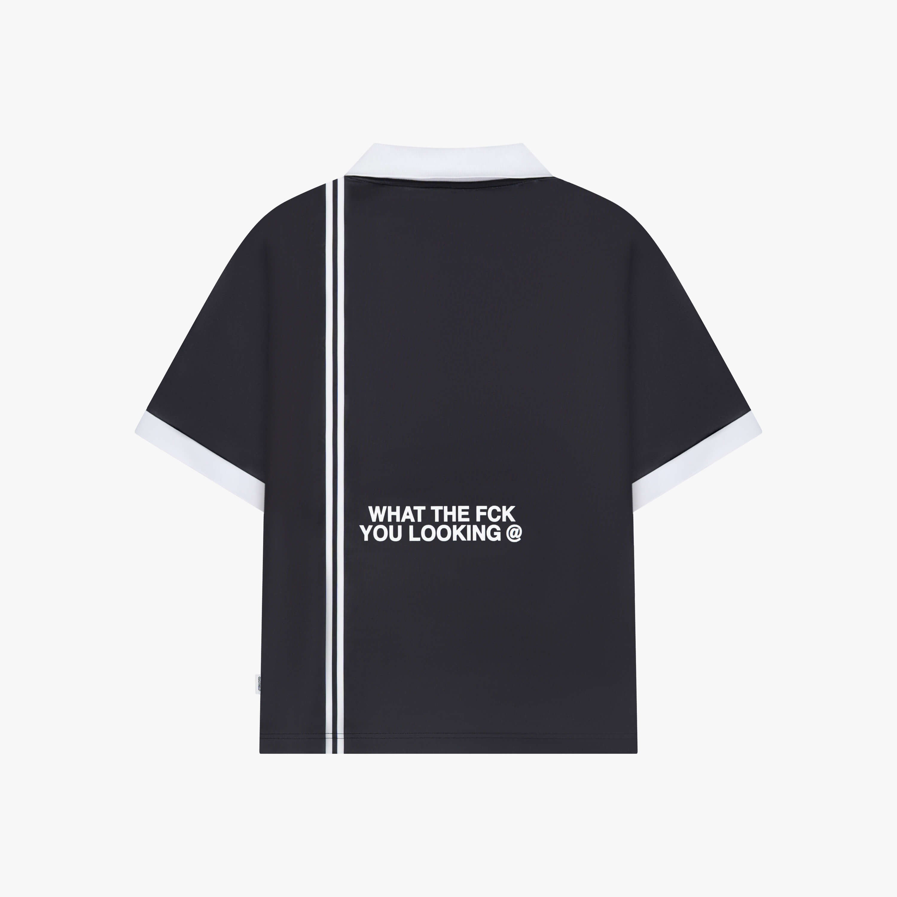 Das Logan Soccer Tee ist vom Spielfeld inspiriert – aber macht seine eigenen Regeln. Dieses auffällige Herren T-Shirt im Fußball-Look kommt mit markanten Quotrell-Grafiken, sportlichen Streifendetails und einem klaren Statement auf dem Rücken: „WHAT THE FCK YOU LOOKING @“ – dezent ist hier kein Thema.