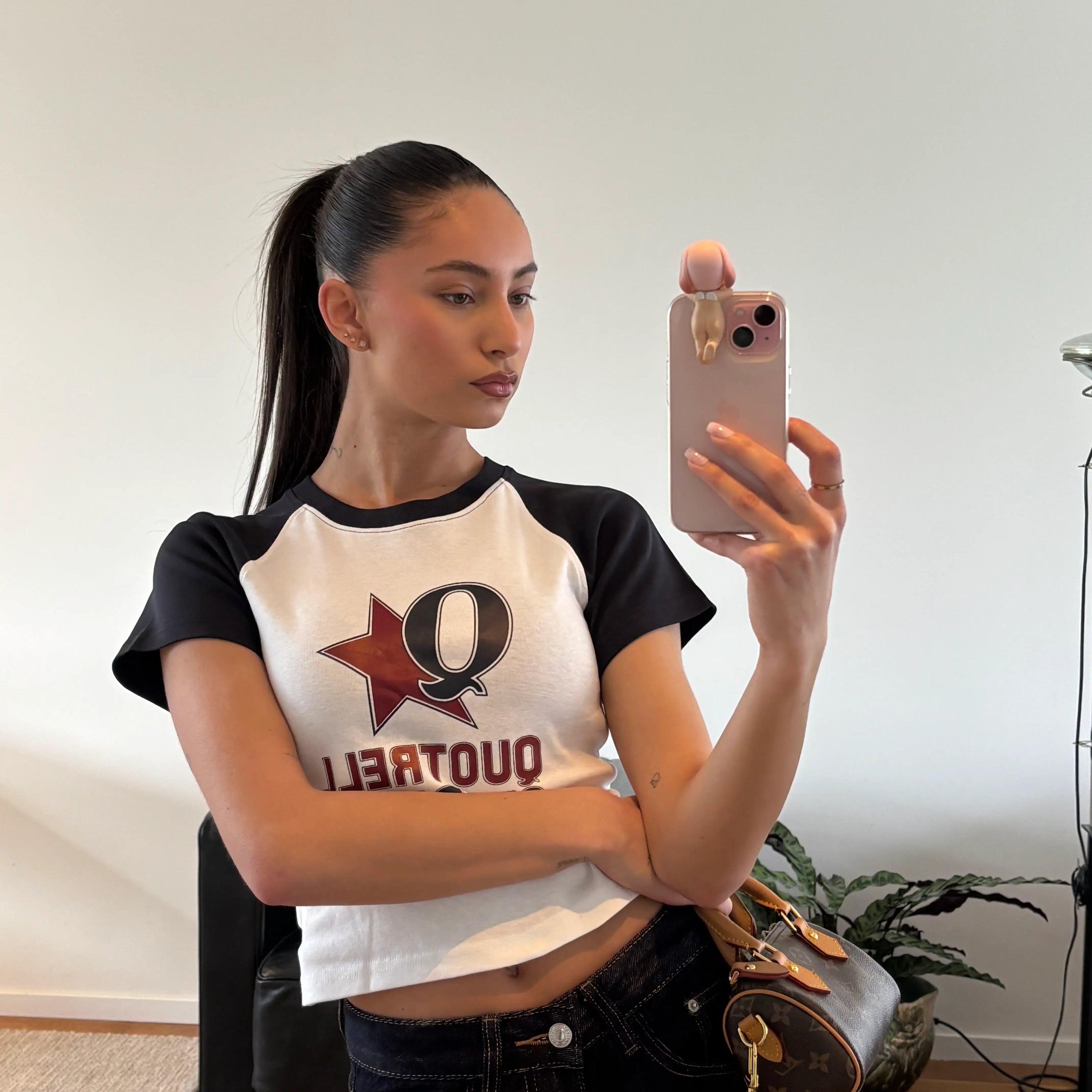 The Carmine Top features a regular fit with raglan sleeve construction for a relaxed, athletic silhouette. Crafted from soft premium cotton and finished with bold front graphic branding. Clean neckline and structured fit make it a versatile everyday streetwear piece.