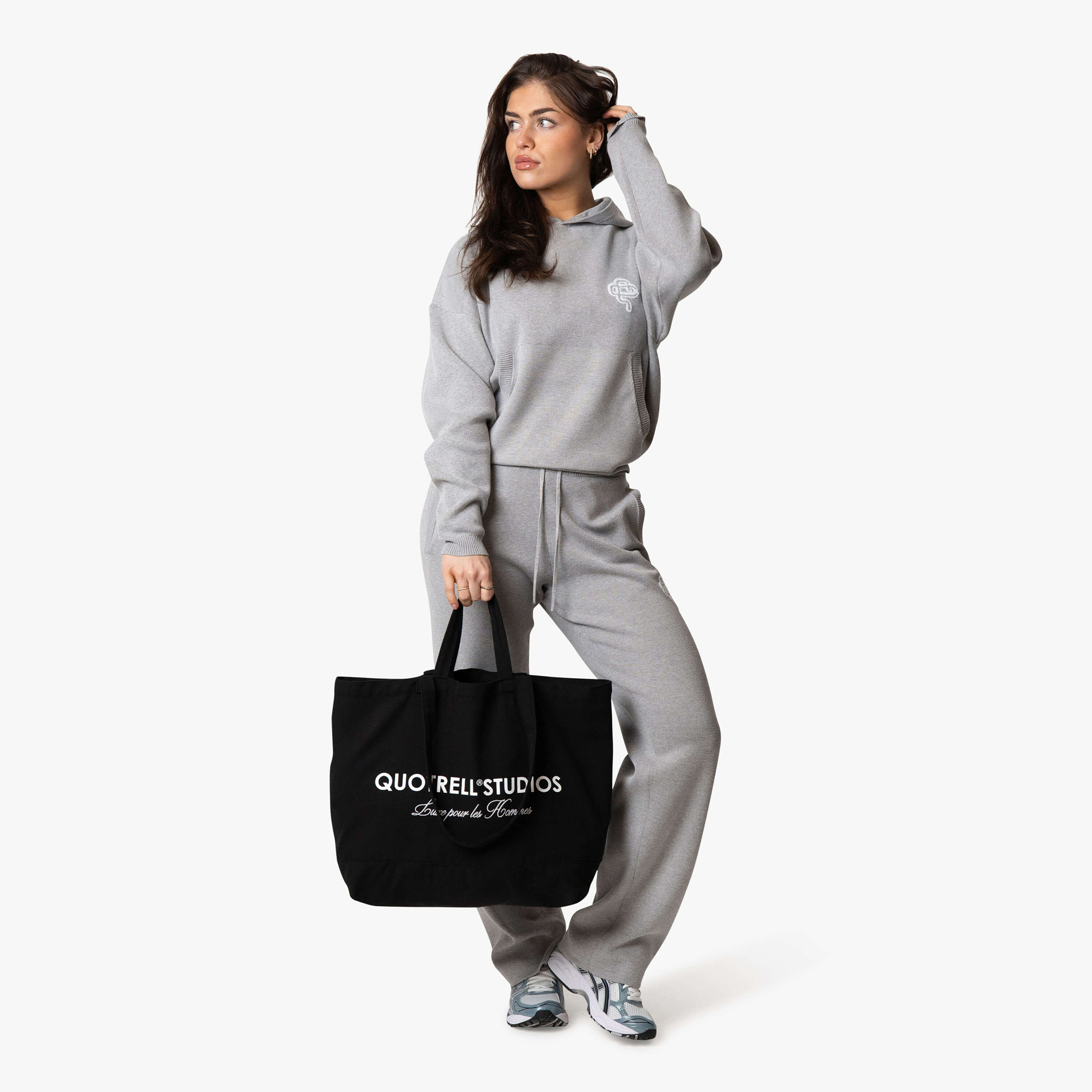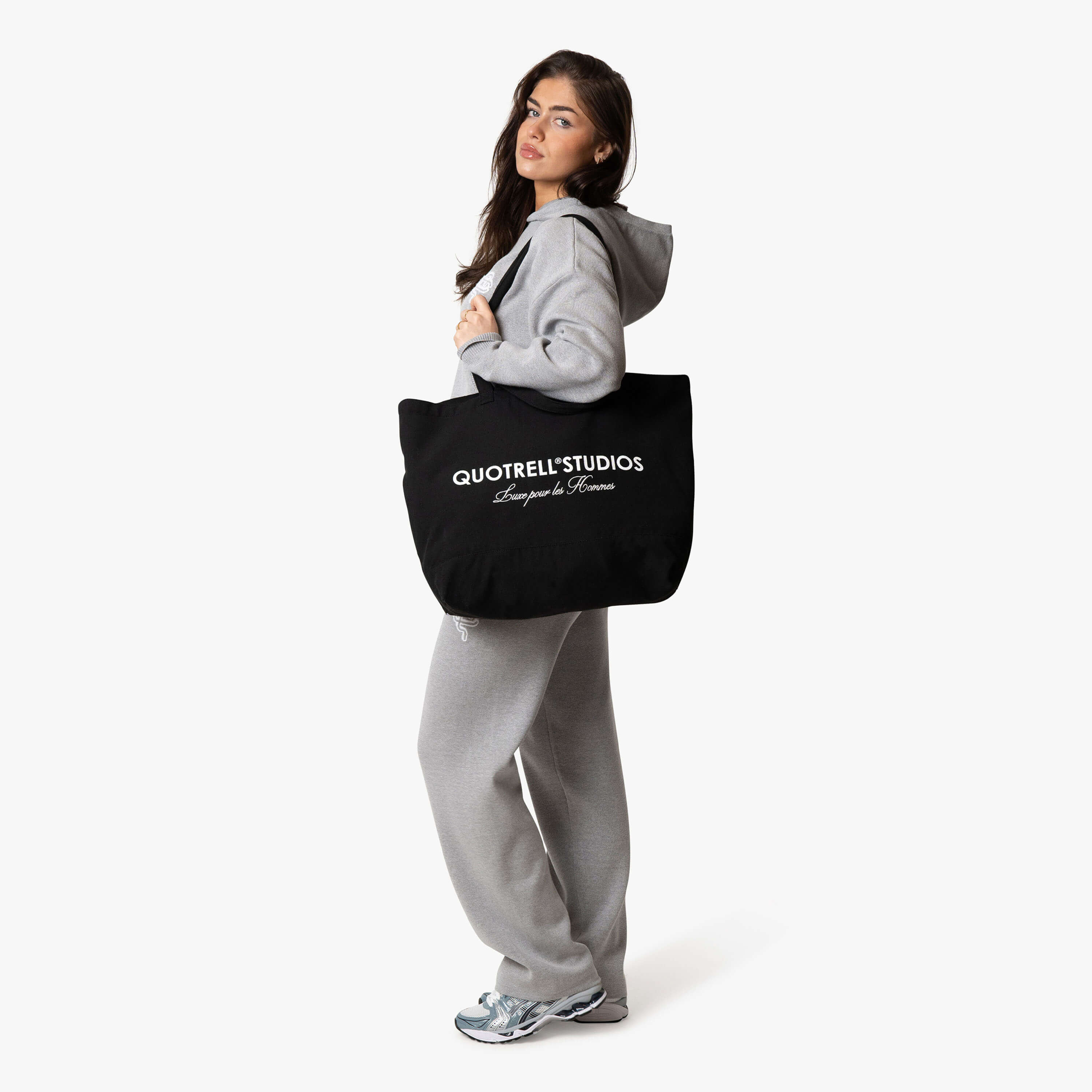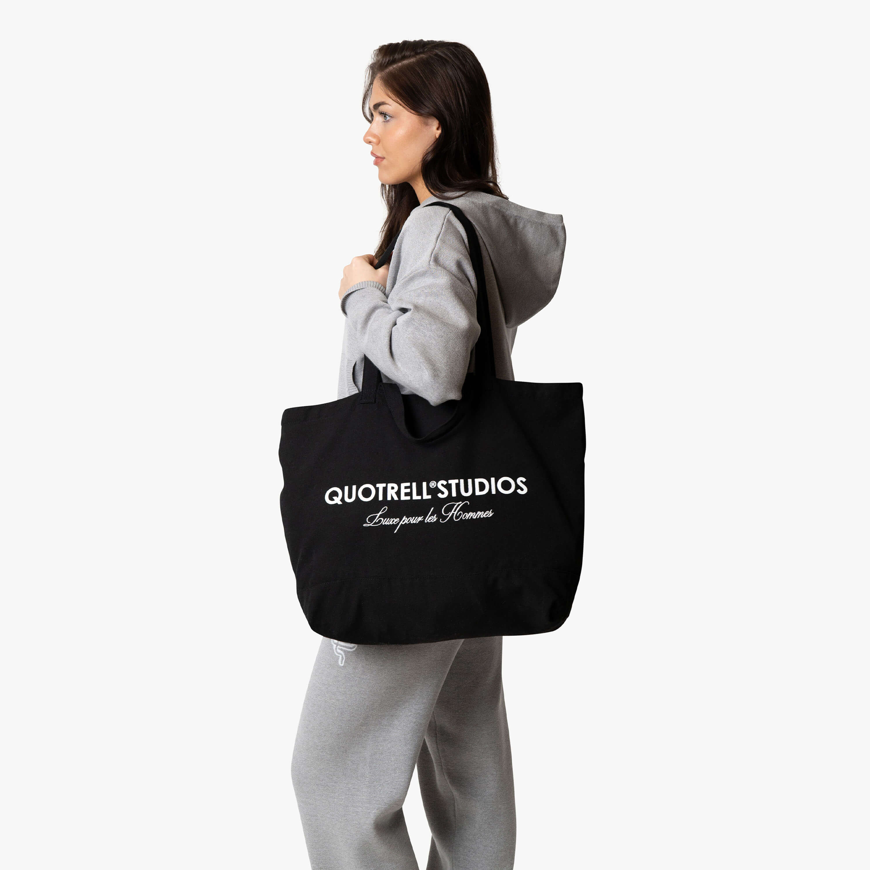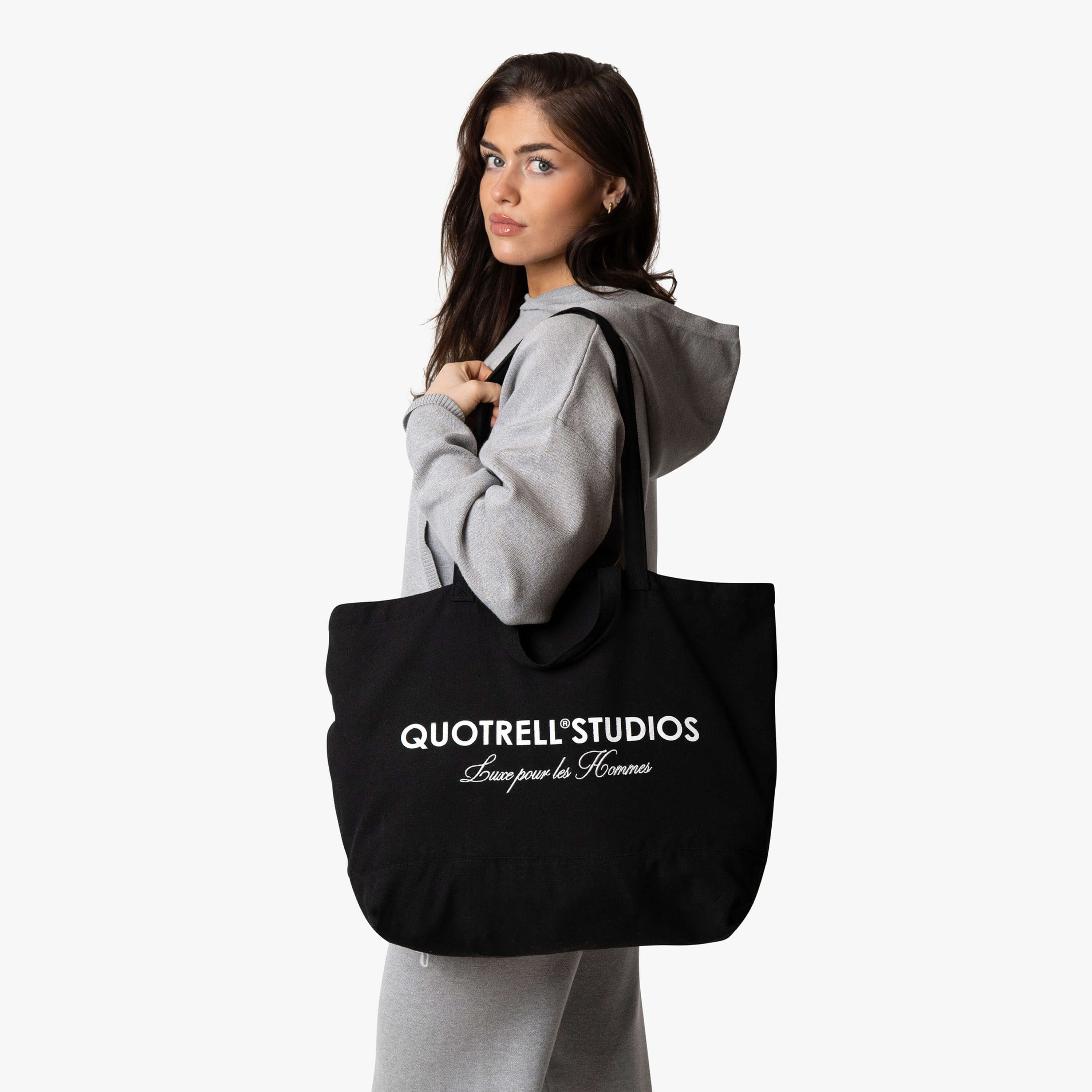 Das Liv-Oberteil besteht aus hochwertiger Bio-Baumwolle, die es unglaublich angenehm zu tragen macht. Das Oberteil ist mit einem Daumenloch versehen, und auf der Brust befindet sich unser Quotrell-Logo. Am linken Ärmel finden Sie ein Etikett mit Quotrell und dem Text „Luxe pour les Femmes“.
