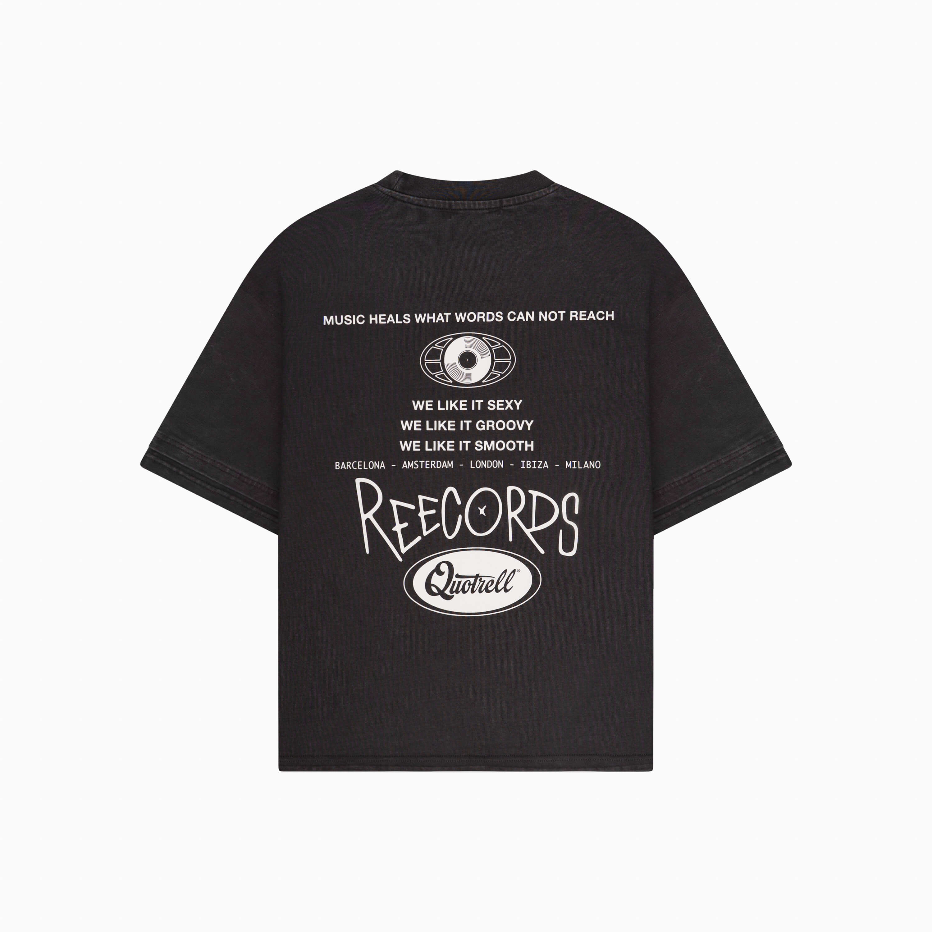 Dieses T-Shirt aus hochwertiger Baumwolle mit bequemer Oversize-Passform begleitet dich von dunklen Tanzflächen bis hin zur Erholung am Tag. Die schlichte Vorderseite sorgt für einen eleganten Look, während der auffällige Aufdruck auf der Rückseite eine unverfälschte Botschaft vermittelt, die von Musik, Rhythmus und Nachtleben inspiriert ist. Ein dezentes doppeltes Ärmel-Finish sorgt für einen hochwertigen Look und verleiht dem T-Shirt einen leicht abgenutzten Touch, ohne die Aufmerksamkeit auf sich zu ziehen.