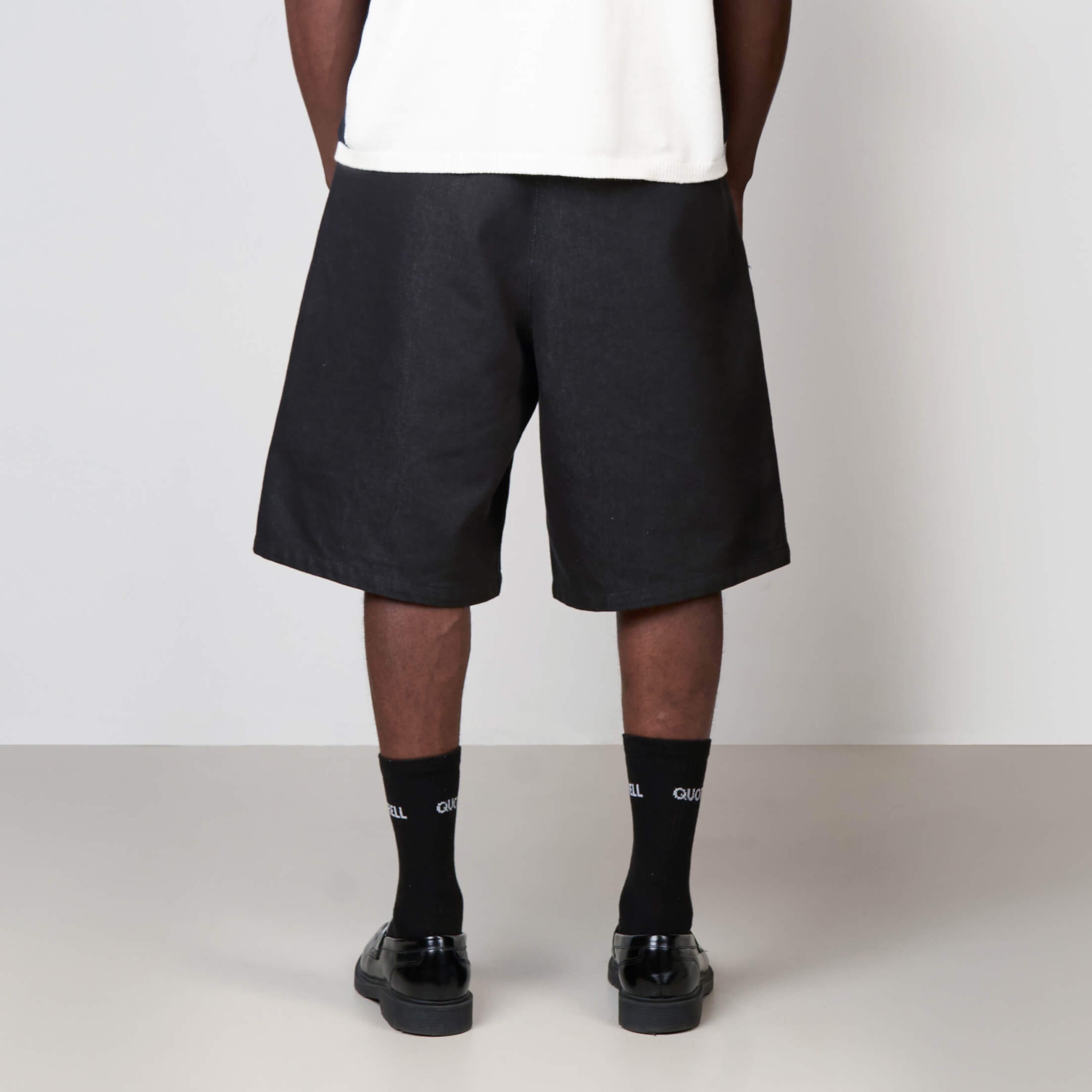 The Riot Short features a relaxed tailored fit crafted from smooth, structured fabric for a clean yet comfortable feel. Designed with sharp front pleats and a knee length silhouette that delivers a modern, elevated look. The adjustable drawcord waistband provides a flexible fit, while side pockets and back welt pockets add subtle functionality. Finished with refined Quotrell branding and a premium back patch for a minimal but distinctive identity. A versatile piece that pairs effortlessly with tees, shirts, or lightweight knits for a sharp everyday outfit.